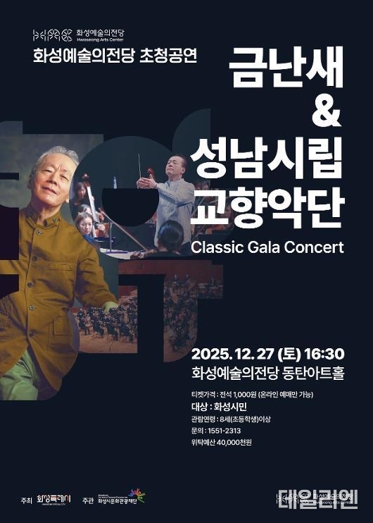 화성시는 오는 12월 27일 오후 4시 30분 동탄아트홀에서 지휘자 금난새와 성남시립교향악단을 초청해 '클래식 갈라 콘서트'를 진행한다고 5일 밝혔다.
