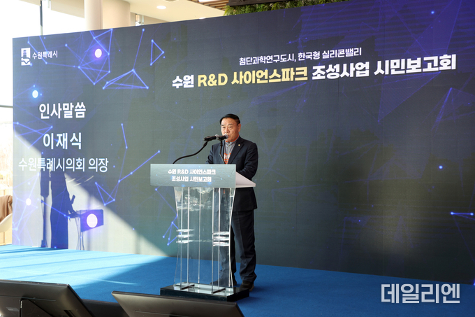 [데일리엔뉴스 이종성 기자] 수원특례시의회가 8일 권선구 일월수목원에서 열린 ‘수원 R&D 사이언스파크 조성사업 시민보고회’에 참석해 사업 추진 상황을 확인하고 시민 의견을 직접 들었다.