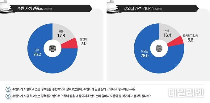 응답자의 78.0%는 “수원시 정책이 앞으로 내 삶을 더 좋게 만드는 데 도움이 될 것”이라고 답해 정책 기대감도 높게 나타났다.