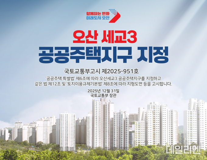 [데일리엔뉴스 유석주 기자] 오산시가 추진 중인 ‘오산세교3신도시’ 조성 사업이 국토교통부의 지구지정 고시를 통해 본궤도에 오르게 됐다.
