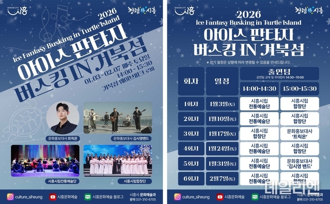 [데일리엔뉴스 이종성 기자] 시흥시는 겨울철 거북섬을 찾는 시민과 관광객을 위해 문화예술 공연 프로그램 ‘2026 아이스 판타지 버스킹 인 거북섬’을 운영한다.