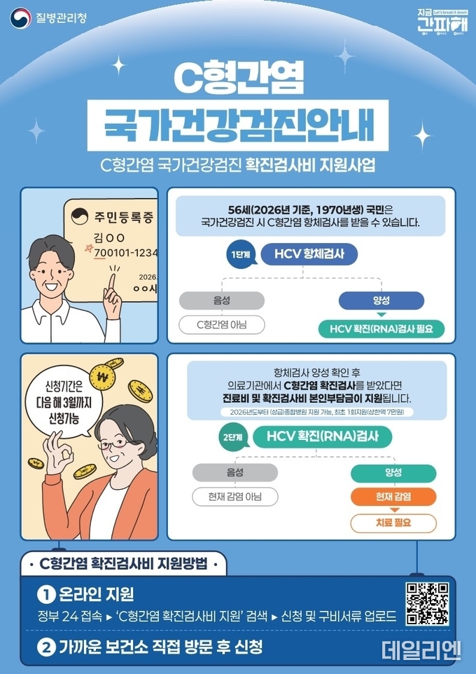 지원 대상은 2026년 국가건강검진에서 C형간염 항체 양성 결과를 받은 1970년생 시민이다.