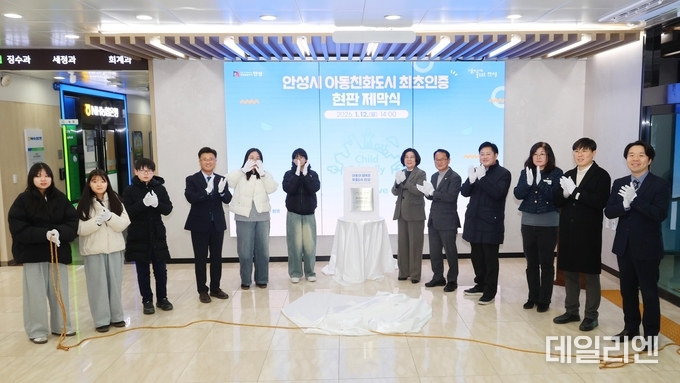 [데일리엔뉴스 이승준 기자] 안성시는 12일 시청 본관 1층 로비에서 ‘유니세프 아동친화도시 최초인증 현판 제막식’을 열었다.