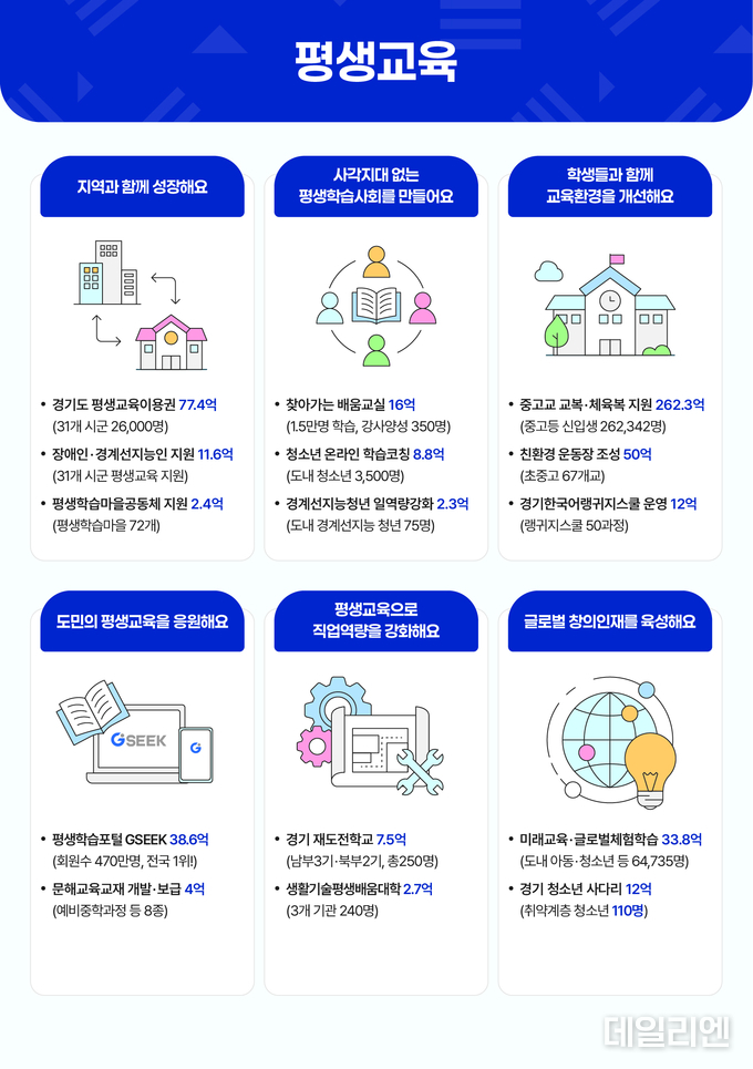 [데일리엔뉴스 이종성 기자] 경기도가 새해를 맞아 도민 누구나 학습 기회를 누릴 수 있도록 맞춤형 평생교육 정책을 대폭 확대한다.