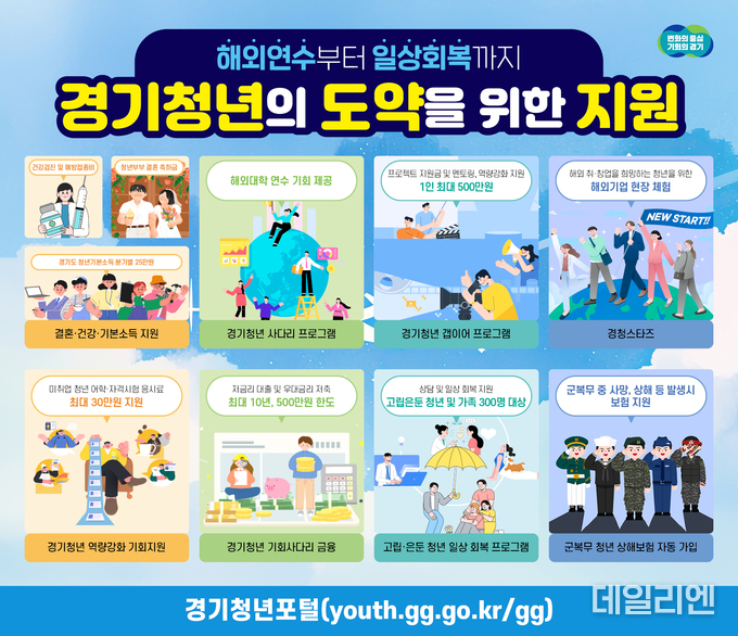 이와 함께 미취업 청년을 대상으로 어학·자격시험 응시료를 최대 30만 원까지 지원하고, 저금리 대출과 우대금리 저축을 결합한 ‘경기청년 기회사다리금융’을 통해 금융 부담을 낮춘다.