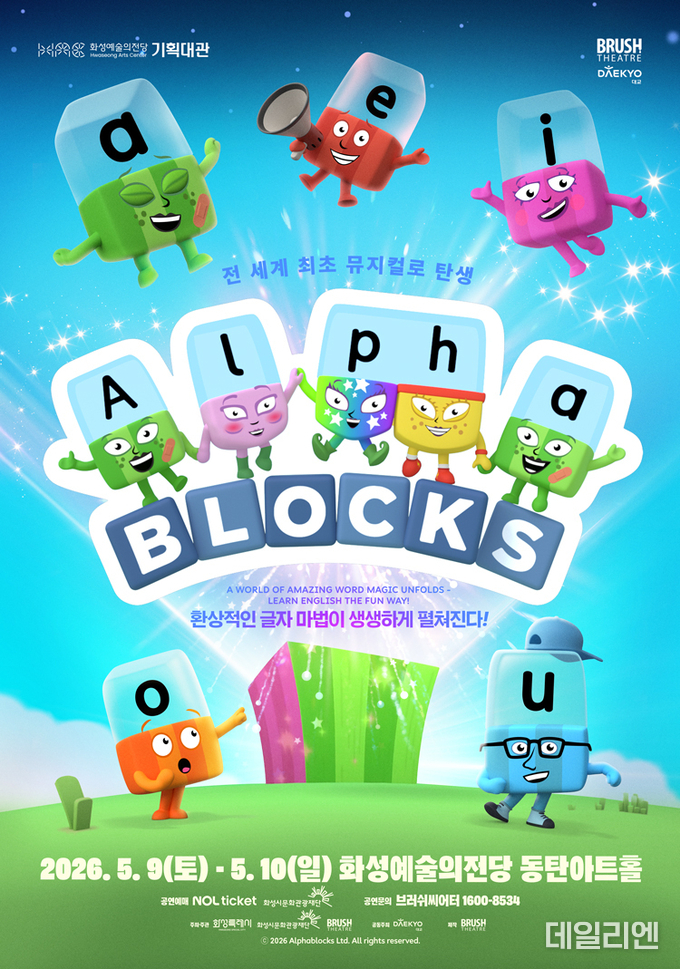 가족뮤지컬 ‘알파블록스’는 5월 9일부터 10일까지 이틀간 화성예술의전당 동탄아트홀에서 총 6회 공연된다. 가정의 달을 맞아 기획된 이번 무대는 화성예술의전당 개관 이후 처음 선보이는 ‘HAC Family 시리즈’ 중 두 번째 작품이다.