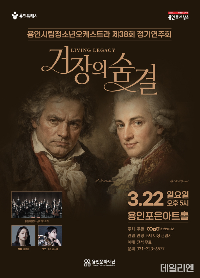 [데일리엔뉴스 이종성 기자] 용인문화재단은 오는 3월 22일 용인포은아트홀에서 용인시립청소년오케스트라 제38회 정기연주회 ‘거장의 숨결’을 개최한다.