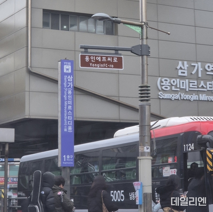 시는 3월 1일 용인FC의 K리그2 홈 개막전을 앞두고 경전철 삼가역 1번 출구 주변에 명예도로명판 4개를 설치했다.