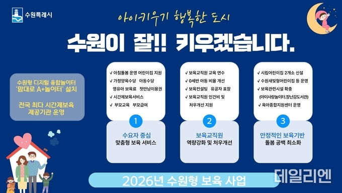 [데일리엔뉴스 이종성 기자] 수원특례시가 돌봄 공백을 줄이기 위한 ‘2026년 보육사업 시행계획’을 수립했다.
