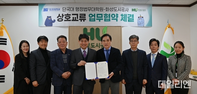 [데일리엔뉴스 이종성 기자] 화성도시공사가 단국대학교 행정법무대학원과 업무협약을 맺고 공공행정 분야 인재 양성과 지식경영 기반 확대에 나섰다.