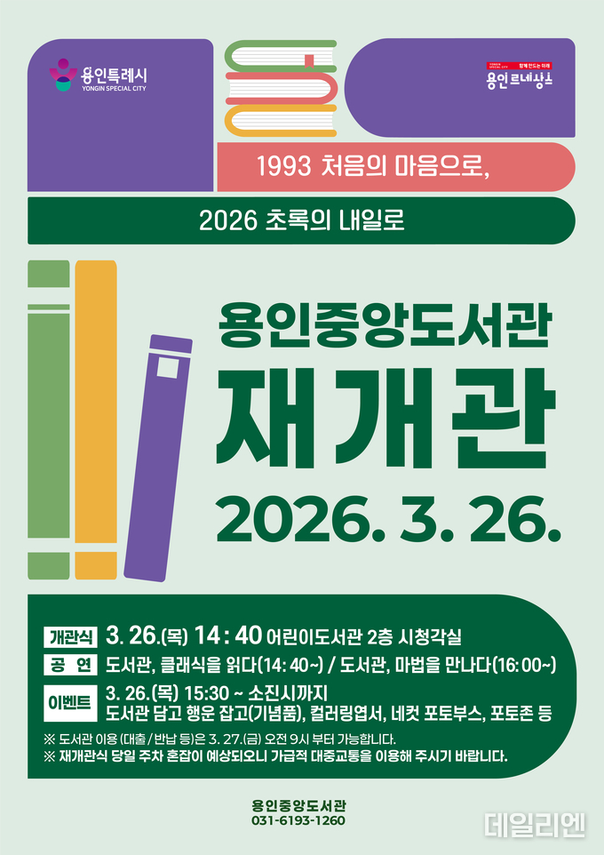 [데일리엔뉴스 이승준 기자] 용인특례시 중앙도서관이 대규모 리모델링 공사를 마치고 오는 26일 문을 다시 연다.
