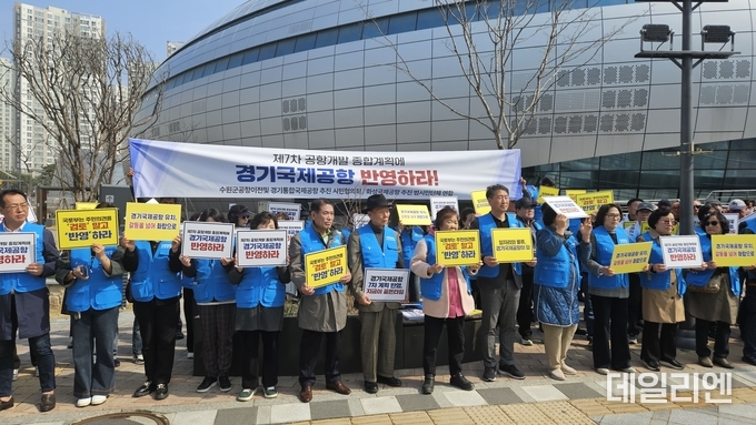 이어 촉구문 낭독과 퍼포먼스를 통해 제7차 공항개발 종합계획에 경기국제공항 건설을 반영하고, 지역 간 갈등 조정을 위한 국가 주도의 해결책을 마련해야 한다고 요구했다.