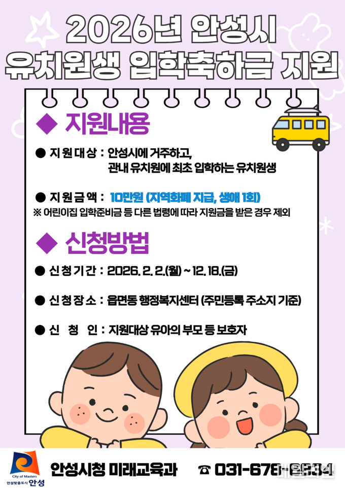 자세한 내용은 안성시청 미래교육과와 읍·면·동 행정복지센터에서 확인하면 된다.
