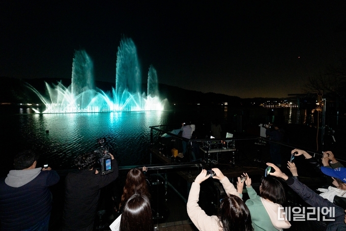 시연식에서는 음악에 맞춰 변화하는 분수와 조명이 함께 연출되며 현장을 찾은 시민들의 관심을 끌었다.