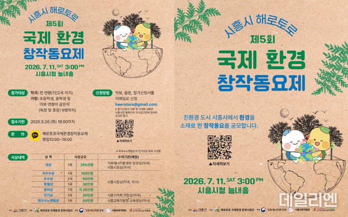 [데일리엔뉴스 이종성 기자] 시흥시가 환경을 주제로 한 창작동요를 발굴하는 ‘제5회 해로토로 국제 환경창작동요제’ 작품 공모에 들어갔다.