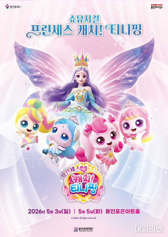 [데일리엔뉴스 이종성 기자] 용인문화재단이 어린이날을 맞아 가족 관객을 겨냥한 쇼뮤지컬 ‘프린세스 캐치! 티니핑’을 오는 5월 3일과 5일 용인포은아트홀 무대에 올린다.