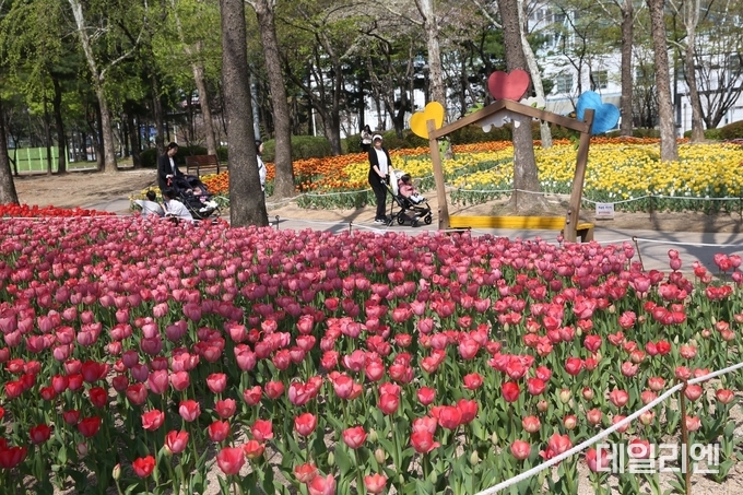 여기에 지난해 가을 식재한 9만본까지 더해 모두 13만6천본의 봄꽃이 공원 전역에서 개화했다고 전했다.