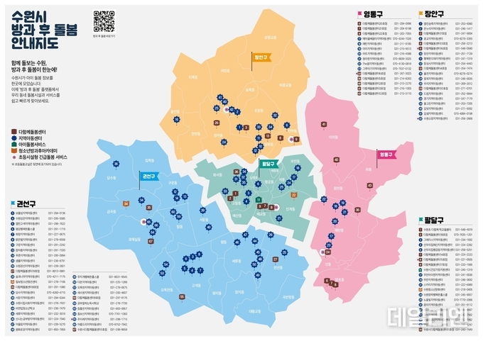 수원시가 운영 중인 초등 돌봄 체계의 중심에는 다함께돌봄센터와 지역아동센터가 있다. 시 전역에는 모두 87곳의 돌봄 제공처가 마련돼 초등학생의 방과 후 시간을 지원하고 있다.