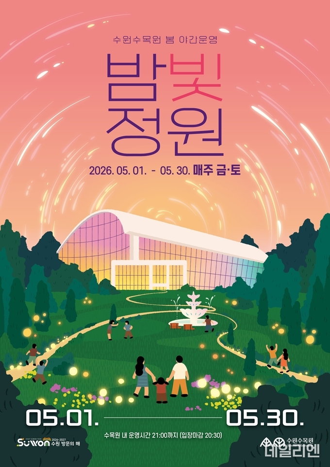 수원특례시는 5월 1일부터 30일까지 매주 금·토요일 ‘2026년 수원수목원 봄 밤빛정원’을 연다고 21일 밝혔다. 행사 기간에는 일월수목원과 영흥수목원의 운영 시간이 연장된다.