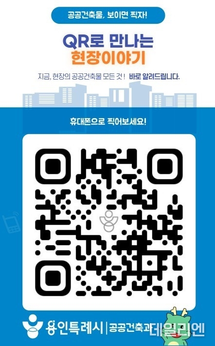 [데일리엔뉴스 이승준 기자] 용인특례시가 지역 내 공공건축 공사현장에 QR코드 기반 안내 시스템을 도입하고 공사 진행 상황을 시민에게 실시간으로 공개한다.