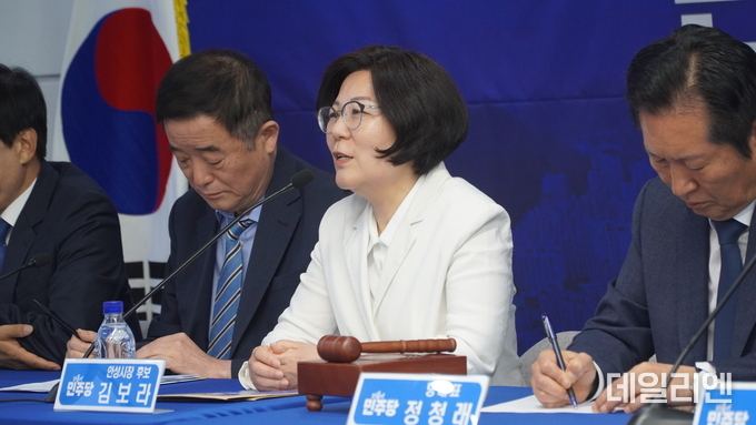 정청래 더불어민주당 대표를 비롯한 당 지도부는 이날 오전 김보라 후보 선거사무소에서 현장 최고위원회의를 열었다. 회의에는 추미애 경기도지사 후보도 참석했다.