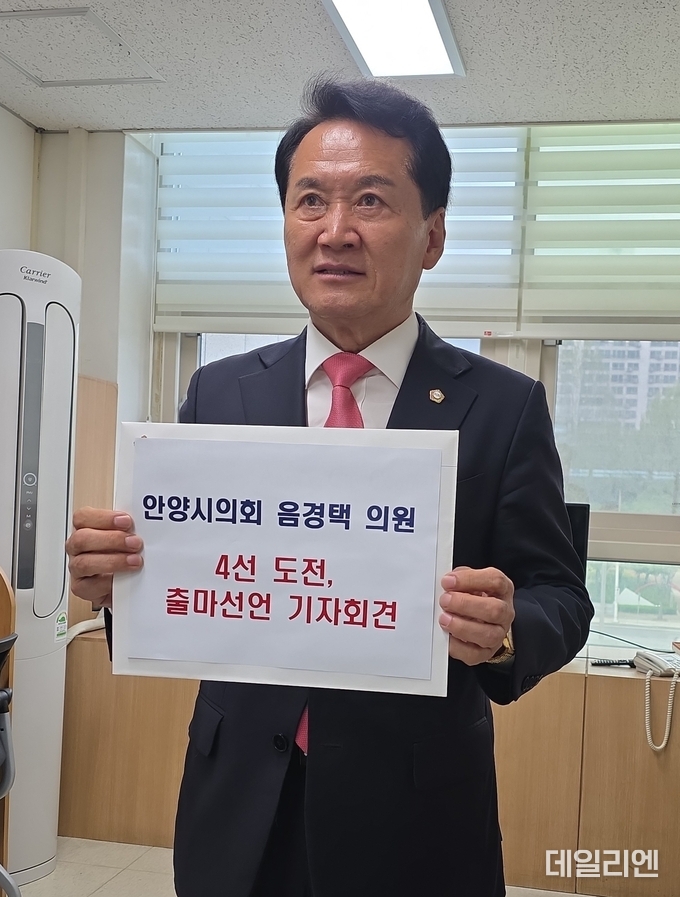 [데일리엔뉴스 이종성 기자] 안양시의회 음경택 의원이 28일 안양시청 송고실에서 제9회 전국동시지방선거 안양시의원 4선 도전을 공식 선언하고, 다선의원의 경험과 정책 역량으로 안양시민의 삶을 지키겠다고 밝혔다.