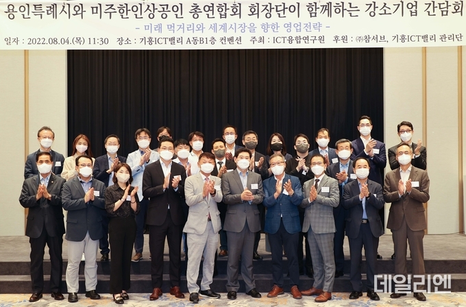 기흥ICT밸리 도시첨단산업단지 내 컨벤션센터에서 열린 이날 간담회에는 이 시장을 비롯해 황병구 미주한인상공회의소총연합회장과 연합회 관계자, 기흥ICT밸리·흥덕IT밸리에 입주해 있는 기업 대표 등이 참석했다.