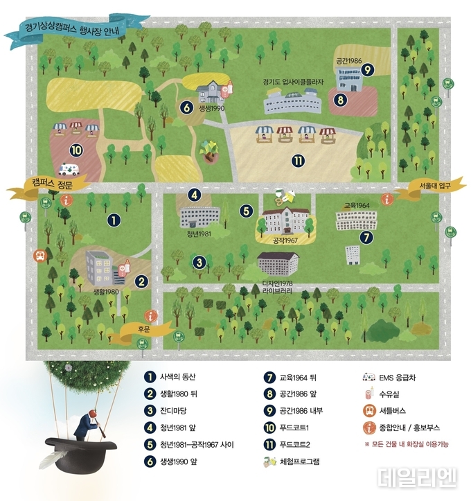 수원연극축제가 열리는 이틀간 경기상상캠퍼스는 연극 작품 공연 외에 다채로운 즐길거리가 가득 채워진다. 환경을 주제로 한 업사이클링 체험부터 지역 작가들과 함께 작품활동을 경험해보는 연계 프로그램, 핸드메이드 소품을 파는 플리마켓 등이 열린다.