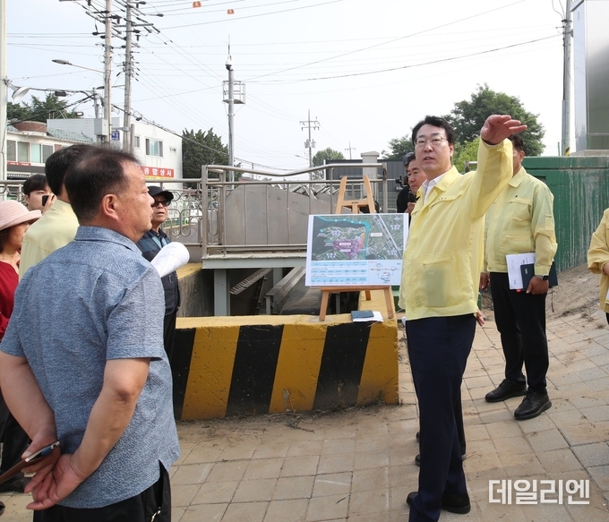 이에 정 시장은 14일 상습 침수지역인 진안동과 황계동을 방문해 시민들의 수해 걱정을 덜고 예방책 마련에 나섰다.