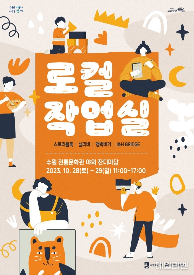 [데일리엔뉴스 이종성 기자] 수원문화재단(대표이사 김현광)은 오는 28~29일 11시부터 17시까지 전통문화관 야외 잔디마당에서 행궁마을 관광 콘텐츠 크리에이터 ‘로컬 작업실’을 연다.