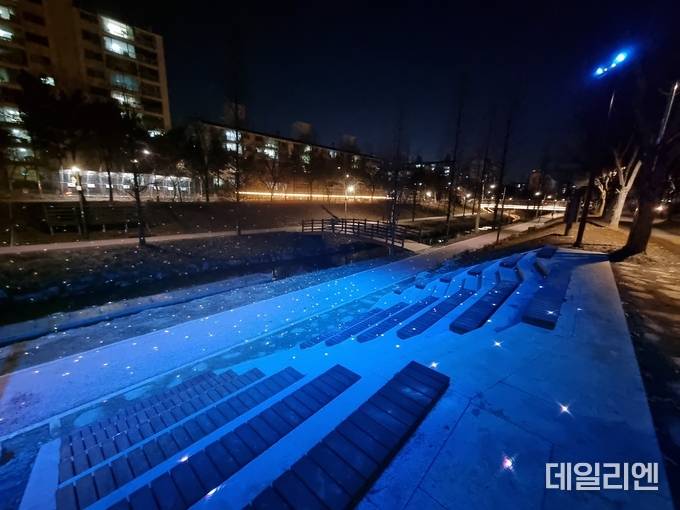또, 다소 밋밋했던 하천에 경관조명을 설치해 밤 산책을 즐기는 시민들의 눈길을 끌고 있다. 교량 2곳에 발광 다이오드(LED) 조명을 연출하고, 친수계단에 반딧불이를 연상케 하는 고보조명(바닥을 비추는 조명)을 설치해 이용객에게 반짝이는 감성을 더하고 있다.
