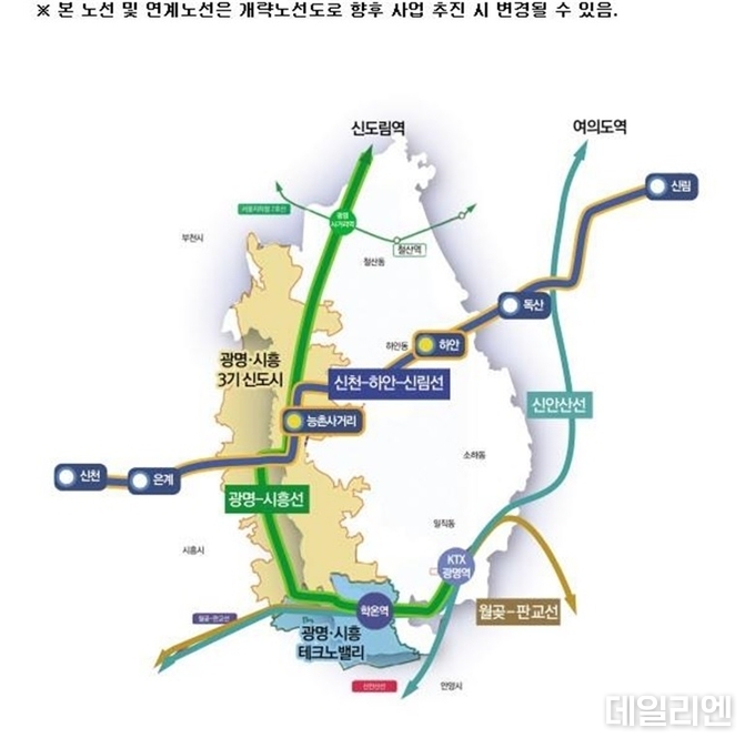 시는 신천~하안~신림선을 비롯해 GTX-D노선, 광명~시흥선이 완성되면 서울7호선과 KTX 고속철도, 월곶~판교선과 함께 남북 2축, 동서 4축의 사통팔달 광역철도망을 갖춘 명실상부한 서부권 철도 허브 도시가 될 것으로 기대하고 있다.