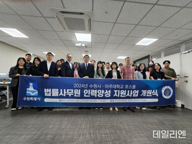 [데일리엔뉴스 이종성 기자] 수원시와 아주대학교 로스쿨(법학전문대학원)은 27일 아주대학교 캠퍼스플라자에서 ‘수원시·아주대학교 로스쿨 법률사무원 인력양성 지원사업’ 개강식을 열었다.