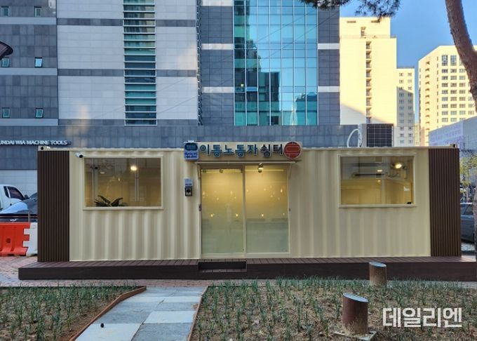 일직동 이동노동자 쉼터는 27㎡(8평) 규모의 컨테이너로 만든 간이 쉼터로 지난해 11월 10일 개소했다. 내부에 냉난방 시스템, 테이블, 소파, 무선인터넷, TV, 정수기 등 편의시설과 무인경비시스템이 설치되어 있으며 24시간 운영된다.