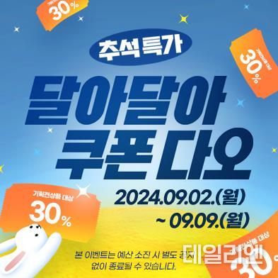 [데일리엔뉴스 이종성 기자] 경기도와 경기도주식회사가 공동 운영하는 ‘착착착’이 9월 9일까지 ‘착착착’ 온라인 쇼핑몰에서 ‘달아달아 쿠폰 다오’ 추석맞이 특별 소비자 할인 기획전을 진행한다고 2일 밝혔다.