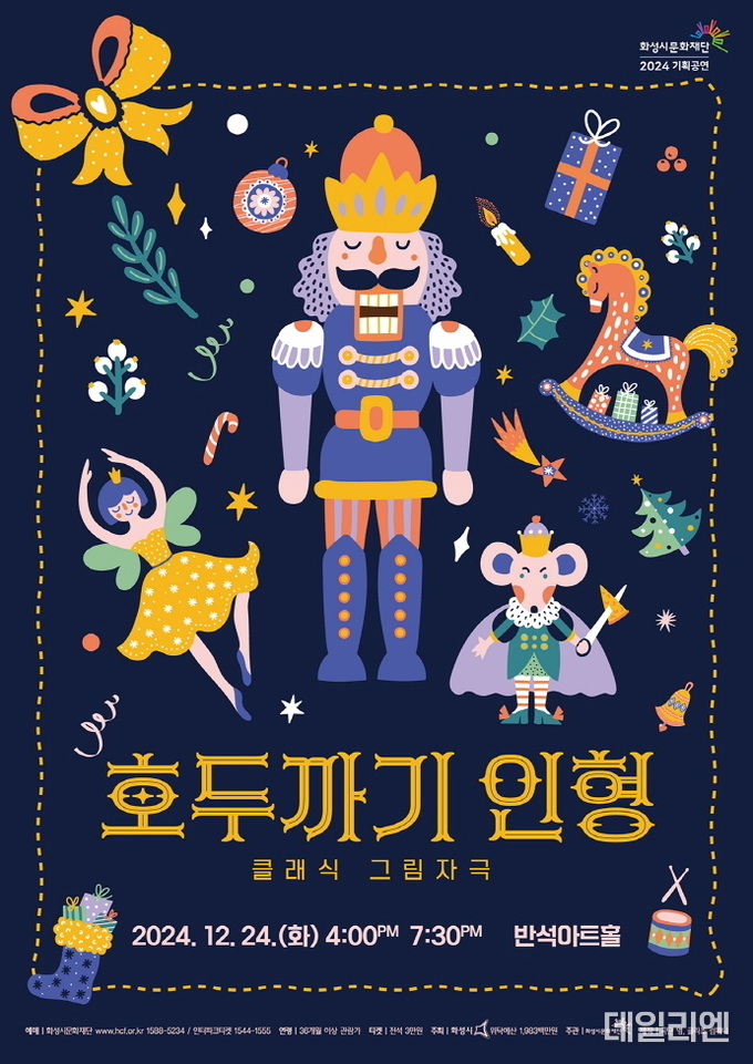 [데일리엔뉴스 이종성 기자] (재)화성시문화재단(대표이사 김신아)은 오는 12월 24일 크리스마스를 맞이하여 동탄복합문화센터 반석아트홀에서 클래식 그림자극<호두까기 인형>을 개최한다.