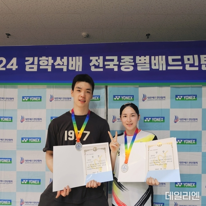[데일리엔뉴스 이종성 기자] '2024 김학석배 전국종별배드민턴선수권대회(대일)' 일반부 혼합복식에서 수원시청과 화성시청이 조를 이룬 김영혁(수원시청)/지영빈(화성시청) 팀이 준우승을 차지했다.