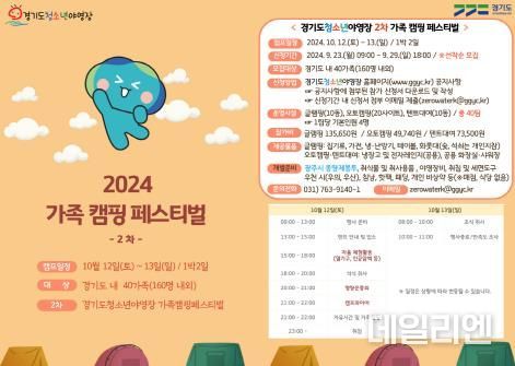 [데일리엔뉴스 이종성 기자] 경기도청소년야영장이 9월 23일부터 9월 29일까지 ‘가족캠핑 페스티벌’에 참가할 가족을 모집한다.