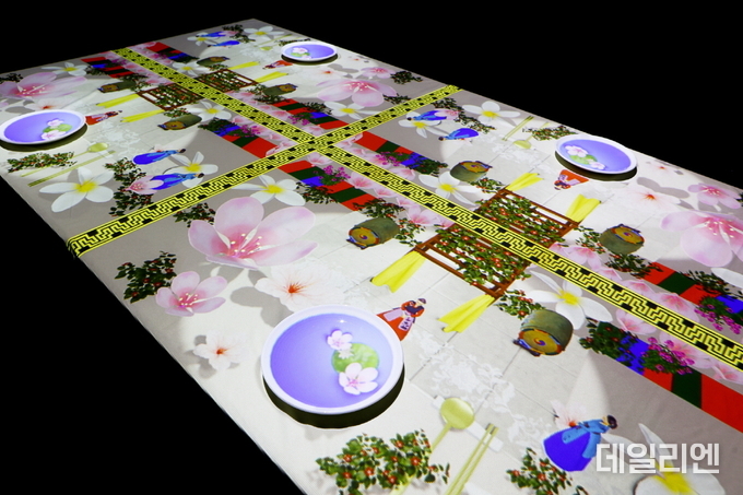 체험형 콘텐츠 ‘혜경궁 홍씨의 초대’는 미각까지 즐거운 경험을 제공한다. 관객이 앉은 테이블 위로 음식을 요리하는 영상이 나오고, 실제로 시식할 수 있는 궁중병과가 제공된다. 만두과, 다식, 율란, 쌀강정 등 실제 혜경궁 홍씨 진찬연에 올렸던 병과를 먹으며 과거와 현재가 연결된다. 하루 8회 진행할 예정이다.