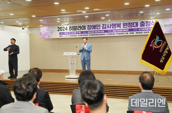 성남시장애인체육회와 민간단체 지구에게 휴가를는 10월 24일 오후 5시 성남시청 3층 한누리에서 ‘히말라야 장애인 감사행복 원정대 출정식’을 개최했다.