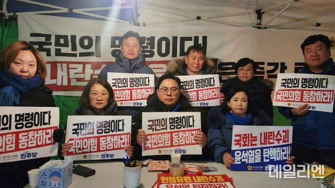 [데일리엔뉴스 이종성 기자] 경기도의회 더불어민주당(대표의원 최종현, 수원7)이 10일부터 윤석열 대통령 탄핵 촉구를 위한 비상 농성체제로 전환하고, 각 지역에서 탄핵 촉구를 위한 활동에 집중하기로 했다고 밝혔다.