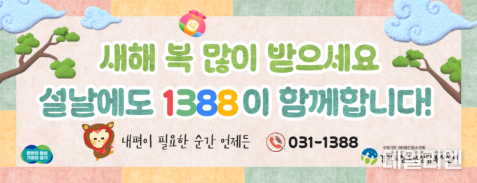 [데일리엔뉴스 이종성 기자] 경기도는 1월 25일부터 30일까지 설 연휴 기간 동안 위기 청소년 지원을 위해 ‘청소년전화 1388’을 24시간 운영한다고 24일 밝혔다.