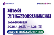 [데일리엔뉴스 이종성 기자] 경기도 장애인 체육인들의 최대 행사인 ‘제16회 경기도장애인체육대회 2026 광주’가 오는 26일부터 28일까지 사흘간 광주시 일원에서 열린다. 경기도장애인체육회는 이번 대회가 26일부터 28일까지 광주시 일원에서 진행된다고 23일 밝혔다. 대회는 경기도장애인체육회가 주최하고 광주시와 광주시장애인체육회가 주관하며, 경기도가 후원한다. 참가 규모는 31개 시·군 5104명이다. 선수 2487명과 임원·보호자 2616명이 참가해 게이트볼과 탁구, 수영 등 17개 종목에서 경쟁을 펼친다. 개회식은 26일 오후 3시 광주시 G-스타디움에서 열린다. 선수단 입장과 개회 선언, 대회기 게양, 선수대표 선서, 성화 점화 등 공식 일정이 진행될 예정이다. 경기도 행정1부지사를 비롯한 도와 시·군 주요 인사, 선수단 등 약 2000명이 참석할 예정이라고 체육회는 전했다. 식전공연과 축하공연도 마련된다. 체육회는 다양한 문화행사를 더해 대회 분위기를 끌어올린다는 방침이다. 이번 대회는 게이트볼과 보치아, 론볼 등 장애인 스포츠 특성을 반영한 종목을 포함해 운영된다. 체육회는 도내 장애인 체육 활성화와 선수 발굴·육성, 시·군 간 화합과 교류 확대에