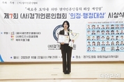 [데일리엔뉴스 이종성 기자] 화성시의회 최은희 의원이 22일 경기도의회 대회의실에서 열린 ‘제7회 (사)경기언론인협회 의정·행정대상 시상식’에서 기초의원 부문 대상을 수상했다. 최은희 의원은 화성시의 지속가능한 발전과 주민 복리 증진을 위해 헌신하며, 시민과의 소통과 공감을 바탕으로 실질적인 정책 성과를 이끌어낸 점을 높이 평가받았다. 특히 대표 발의한 「화성시 환경피해로 인한 주민 갈등 예방 및 조정에 관한 조례안」은 환경피해를 사전에 예방하고 주민 간 갈등을 제도적으로 조정할 수 있는 기반을 마련한 모범 사례로 꼽힌다. 조례는 환경문제와 주민권익 보호를 균형 있게 추진한 입법 성과로 평가받았다. 또한 최 의원은 5분 자유발언을 통해 ▲어린이 안전을 위한 스쿨존 보완 ▲지역 침수 문제 해결 ▲발안일반산업단지 내 폐기물 소각업체의 소각물 증설로 인한 주민 피해 문제 ▲물 절약을 통한 지속가능한 환경정책 필요성 등을 꾸준히 제기하며 현장 중심의 의정활동을 이어왔다. 최 의원은 평소 시민의 목소리를 직접 청취하고 정책에 반영하는 데 주력했으며, 안전·환경·복지 등 생활 밀착형 정책을 꾸준히 추진해왔다. 또한 시민 생활의 질 향상과 청렴한 의정활동으로 동료 의원들