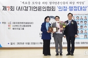 [데일리엔뉴스 이종성 기자] 사단법인 경기언론인협회(회장 박종명)가 22일 오후 경기도의회 대회의실에서 ‘제7회 의정·행정대상 시상식’을 열고 도민을 위한 의정과 행정활동에 기여한 수상자 36명에게 상을 수여했다. 이날 시상식에는 정치·행정·언론계 인사들이 참석해 수상자들의 공로를 축하했다. 행정 부문에서는 지자체장 2명, 국회의원 및 광역의원 12명, 기초의원 20명, 특별대상 2명이 수상의 영예를 안았다. 의정부문에서는 국회의원 ▲이상식 ▲박해철 의원이, 광역의원 부문에서는 경기도의회 ▲김규창 부의장 ▲김선희 ▲방성환 ▲정하용 ▲한원찬 ▲김용성 ▲김옥순 ▲이경혜 ▲조미자 ▲황진희 의원 등 10명이 수상했다. 기초의원 부문에는 ▲수원시의회 이희승·오세철·정영모·현경환 의원 ▲용인시의회 김병민·김희영·안지현 의원 ▲성남시의회 김윤환·민영미 의원 ▲안양시의회 김주석 부의장·곽동윤 의원 ▲화성시의회 차순임·최은희 의원 ▲파주시의회 박대성 의장·이익선 부의장 ▲광명시의회 정지혜 의원 ▲광주시의회 주임록 의원 ▲양주시의회 윤창철 의장 ▲시흥시의회 오인열 의장 ▲안산시의회 박태순 의장이 선정됐다. 특별대상에는 정윤경 경기도의회 부의장이 ‘정치발전특별대상’을 수상했다.