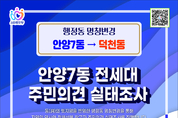 [데일리엔뉴스 이종성 기자] 안양시가 만안구 안양7동의 행정동 명칭을 76년 전 옛 이름인 '덕천동'으로 되돌리기 위한 주민의견 실태조사에 착수했다. 시는 12월 1일부터 내년 1월 31일까지 안양7동 전 세대를 대상으로 행정동 명칭을 '덕천동'으로 변경하는 것에 대한 찬반 의견을 조사한다고 밝혔다. 조사는 시 홈페이지를 통한 비대면 방식과 안양7동 행정동명칭변경추진위원회의 각 세대 방문조사를 병행한다. 비대면 조사는 12월 1일부터, 방문조사는 12월 18일부터 각각 시작된다. 안양7동 전체 세대의 60% 이상이 참여하고, 참여 세대의 과반수가 찬성할 경우 명칭 변경이 추진된다. 시는 조사 결과에 따라 안양8동, 안양9동과 함께 행정동 명칭변경을 위한 조례 개정 절차를 진행할 예정이다. 덕천동은 어린이들이 샘물 솟듯이 씩씩하게 자라서 나라에 큰 일꾼이 되기를 바라는 뜻으로 큰 덕(德)에 샘 천(泉)을 취해 붙여진 옛 지명이다. 앞서 시는 지난 9월 12일부터 30일까지 안양7동 주민들을 대상으로 행정동 명칭에 대한 선호도 조사를 진행했다. 조 사에 참여한 646세대 중 52.9%인 342세대가 덕천동을 선호해 안양7동 행정동명칭변경추진위원회는 덕천동을 명칭