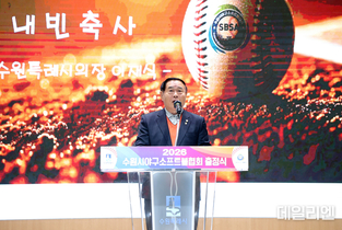 [데일리엔뉴스 이종성 기자] 수원특례시의회가 수원시 야구·소프트볼 선수단의 새 시즌 출발을 응원하며 현장 지원에 나섰다. 수원특례시의회는 지난 3일 수원시청 대강당에서 열린 수원시야구소프트볼협회 출정식에 참석해 선수단과 관계자들을 격려했다. 이날 행사에는 이재식 의장을 비롯해 오세철 예산결산특별위원장, 리틀 유소년 야구단과 수원파인이그스 독립야구단 선수단, 동호인 등 야구 관계자들이 함께했다. 출정식은 출정사와 축사를 시작으로 선수단 결의문 선서, 2026년 협회 비전 발표, 장학금 전달, 시구와 시타 순으로 진행됐다. 새 시즌을 앞둔 각 팀과 선수들은 선전을 다짐하며 결의를 다졌다. 이재식 의장은 “이번 출정식은 한 해를 시작하며 서로를 믿고 함께 나아가자는 약속의 자리”라며 “승패보다 과정과 팀워크를 소중히 여기며 시민과 함께하는 건강한 야구 문화를 만들어가길 바란다”고 말했다.