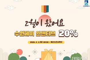 [데일리엔뉴스 이종성 기자] 수원특례시가 설 명절을 맞아 2월 한 달간 수원페이 인센티브를 20%로 확대한다. 28일 시에 따르면 수원페이 인센티브는 2월 1일 오전 9시부터 예산이 소진될 때까지 지급된다. 1인당 충전 한도는 50만 원으로, 최대 충전 시 10만 원의 인센티브를 받을 수 있다. 수원페이 1인당 보유 한도는 100만 원이다. 기존 잔액을 사용해야 잔여 한도만큼 추가 충전이 가능하다. 수원페이는 경기지역화폐 앱을 통해 충전할 수 있으며, 오프라인 충전소에서도 가능하다. 다만 오프라인 충전소는 공휴일에는 운영하지 않는다. 오프라인 충전소 목록은 수원시 홈페이지에서 ‘수원시 지역화폐’를 검색해 확인할 수 있다. 시 관계자는 “지난해 설과 추석 명절에 인센티브를 확대 발행한 결과, 명절 기간 수원페이 사용액이 확대 이전보다 65% 증가했다”며 “인센티브 확대가 지역경제 활성화에 긍정적인 효과를 낸 것으로 보인다”고 밝혔다. 이어 “이번 설 연휴에도 수원페이 인센티브 확대로 골목상권을 중심으로 소비가 늘어나길 기대한다”고 말했다.