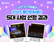 [데일리엔뉴스 이종성 기자] 용인문화재단은 시민 참여 온라인 투표를 통해 ‘시민이 선정한 2025년 용인문화재단 5대 대표 사업’을 확정해 발표했다. 이번 투표는 재단이 2025년 한 해 동안 추진한 공연, 축제, 문화공간 운영 등 주요 사업 가운데 시민이 공감하고 체감한 사업을 직접 선택하는 방식으로 진행됐다. 시민 인식과 선호도를 확인해 향후 사업 운영에 반영하기 위해 마련됐다. 투표는 2026년 1월 28일부터 2월 3일까지 7일간 온라인으로 실시됐다. 용인 시민을 포함해 누구나 참여할 수 있도록 개방형으로 운영됐다. 총 1861명이 참여했다. 투표 결과 ▲‘1525석으로 다시 열다’ 용인포은아트홀 리뉴얼 재개관 ▲‘대형 공연이 찾아오는 공연장’ 용인포은아트홀 공연 경쟁력 강화 ▲‘시민이 기획하고 시민이 완성한 축제’ 조아용 시민 퍼레이드 ▲‘도심을 문화로 채우다’ 가을 별빛 콘서트 & 어텀라운지페스티벌 ▲‘경기 남부 대표 어린이 문화공간’ 용인어린이상상의숲이 5대 사업으로 선정됐다. 재단은 용인포은아트홀 객석 확장과 시설 개선을 통해 대형 공연 유치 기반을 마련하고 관람 환경을 개선했으며, 시민 참여형 축제와 도심 문화 프로그램 운영으로 생활권