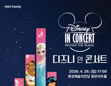 [데일리엔뉴스 이종성 기자] 디즈니 공식 라이선스 콘서트 ‘2026 디즈니 인 콘서트 : Beyond the Magic’이 오는 4월 26일 오후 5시 화성예술의전당 동탄아트홀에서 열린다. 이번 공연은 개관 이후 처음 선보이는 ‘HAC Family 시리즈’의 첫 무대로, 온 가족이 함께 즐길 수 있는 공연 콘텐츠로 기획됐다. ‘디즈니 인 콘서트’는 평균 관람 평점 9.8점을 기록하며 꾸준한 인기를 이어온 라이브 콘서트다. 5주년을 맞은 올해 공연에서는 <인어공주>, <라이온 킹>, <알라딘>, <미녀와 야수> 등 클래식 명작을 비롯해 <라푼젤>, <모아나>, <겨울왕국> 등 주요 작품의 대표곡을 오케스트라 연주로 선보인다. 대형 스크린에 상영되는 디즈니 애니메이션 영상과 국내 뮤지컬 배우, 오케스트라가 어우러져 무대를 구성한다. 특히 2024년 개봉작 <무파사: 라이온 킹>의 대표곡 ‘I Always Wanted A Brother’도 라이브로 공개될 예정이다. 무대에는 이종석, 이아름솔, 이수빈, 신은총 등 4명의 싱어가 참여해 다양한 색깔의 무대를 선보인다. 화성예술의전당